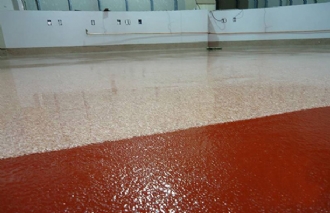 ●待中层材料固化后,检查无异常现象在将调配好的环氧砂浆面料用滚筒涂装。